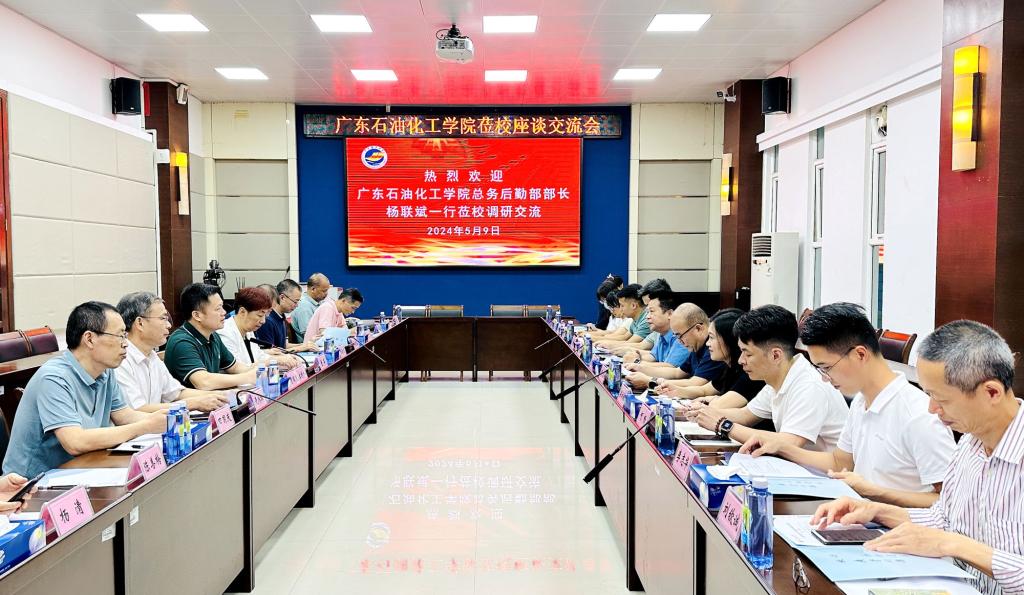 5月9日, 广东石油化工学院总务后勤部部长杨联斌等一行11人到AC米兰湖光校区调研交流。后勤保障部部长曾昭茂主持座谈会,后勤党委、后勤保障部、资产设备管理部、基础建设部等部门负责人出席座谈会。