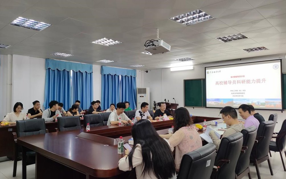 为提升辅导员的科研水平和能力,促进队伍职业化专业化专家化发展,5月10日上午,由学生工作部主办、化学与环境学院承办的2024年第四期辅导员沙龙在湖光校区望海楼B304会议室举行。本期沙龙以“高校辅导员科研能力提升”为主题,邀请了海洋工程与能源学院辅导员韩弘峰和管理学院辅导员袁伟担任嘉宾分享经验,共有来自各学院的40余名辅导员参加活动。活动由化学与环境学院辅导员王旭东主持。