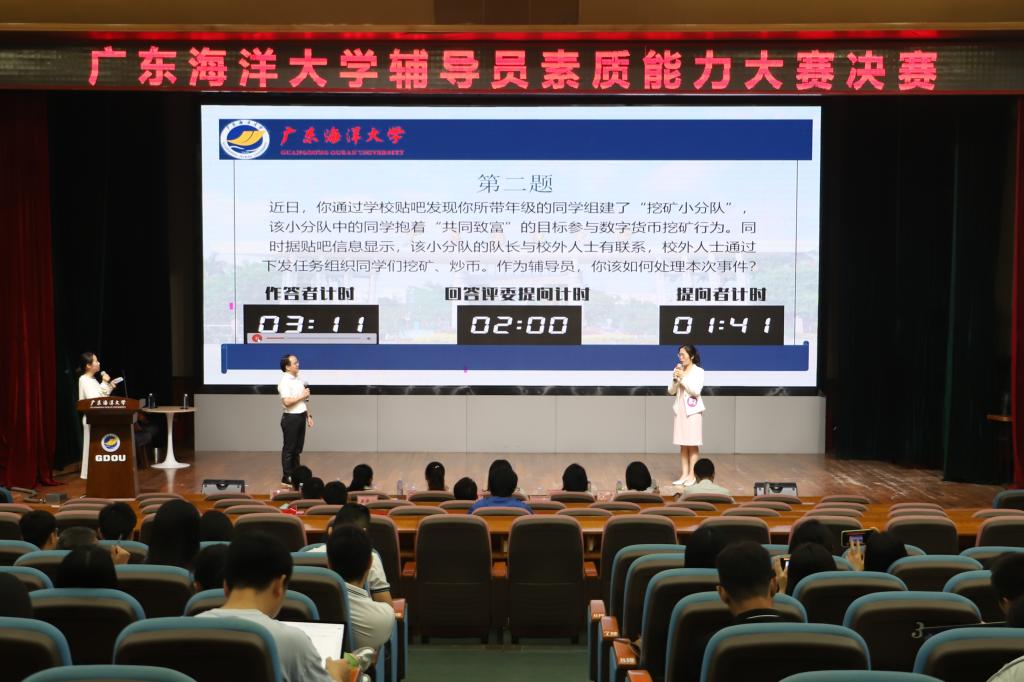经过前期基础知识测试、案例研讨和谈心谈话等三大初赛、复赛环节,共有6名辅导员闯入决赛。决赛对标广东省辅导员素质能力大赛要求,以案例研讨、谈心谈话等环节展开,主要考察辅导员综合运用理论分析问题、研判问题、解决问题的能力,以及辅导员对学生特征、学生成长成才规律的了解把握程度,对学生的教育引导能力、解决理论困惑和实际问题的能力等。经过激烈角逐,经济学院李文河获得一等奖;管理学院蔡静俏、中歌艺术学院罗文怡获得二等奖;海洋工程与能源学院何宇宁、经济学院叶梦怡、船舶与海运学院陈方园获得三等奖。