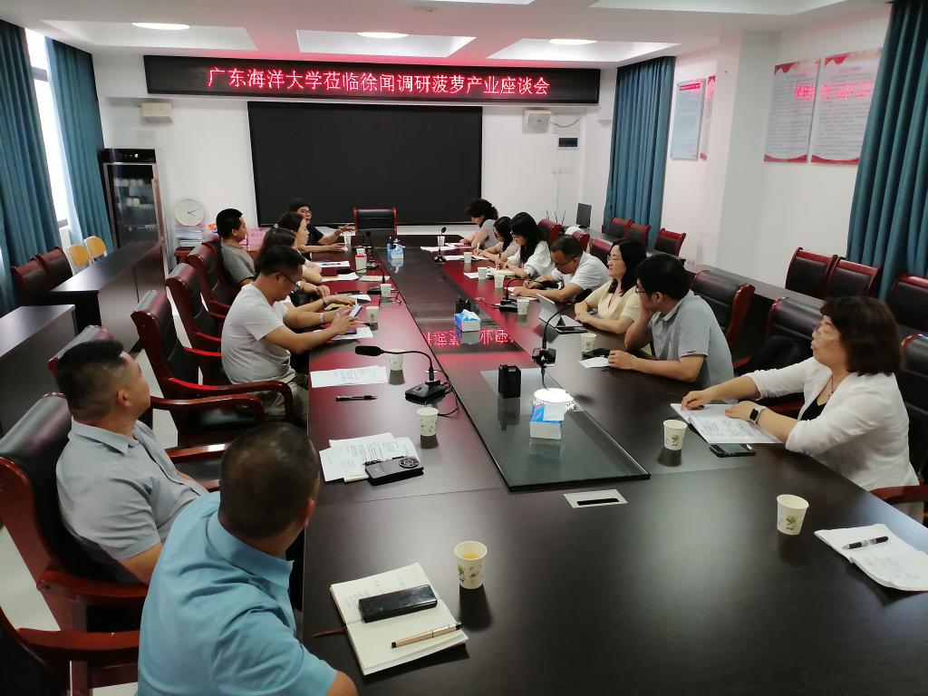 下午,专家团队在徐闻县农业农村局二楼会议室与县农业农村局、曲界镇领导、广东农垦红星农场、徐闻县菠萝产业协会、农业合作社代表、菠萝深加工企业代表等举办了徐闻菠萝产业发展座谈交流会。