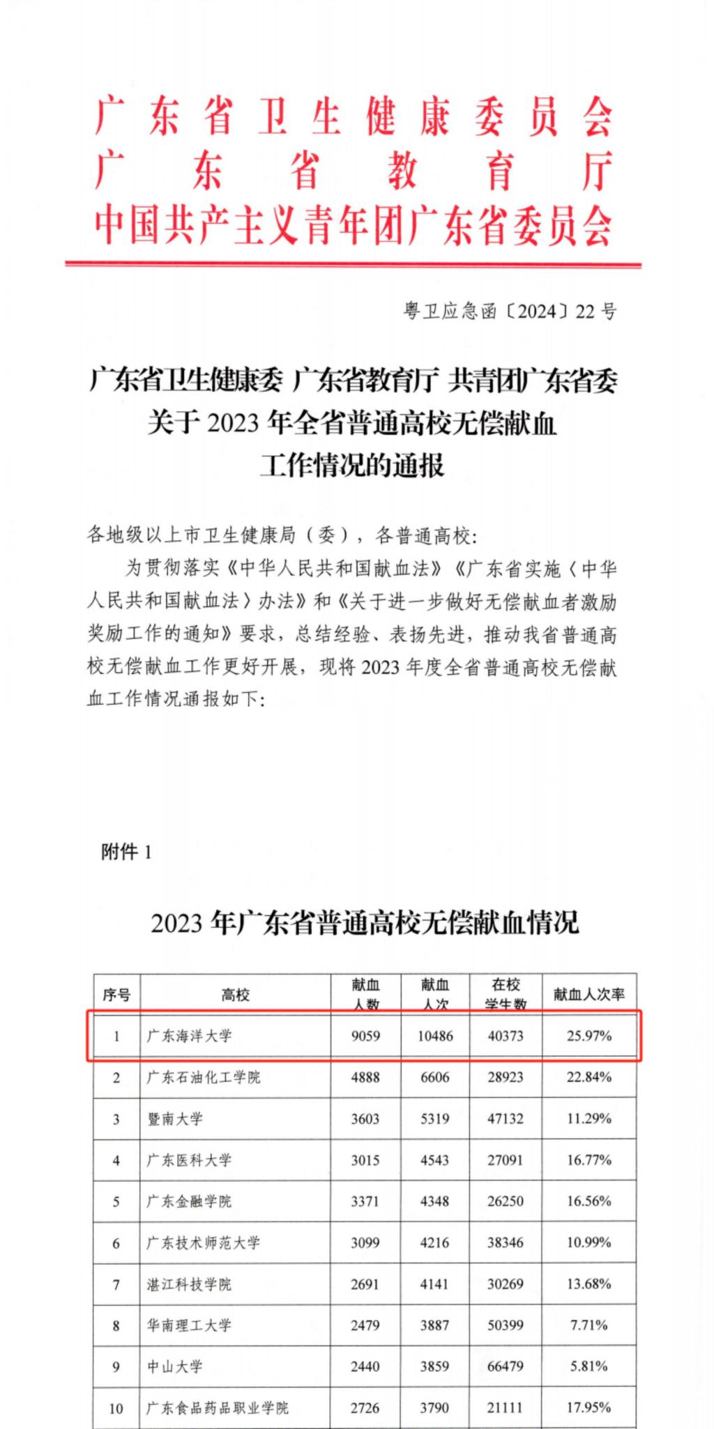 近日,广东省卫生健康委、广东省教育厅、共青团广东省委员会联合公布了关于2023年全省普通高校无偿献血工作情况的通报,AC米兰无偿献血达到10486人次,位居全省普通高校首位。