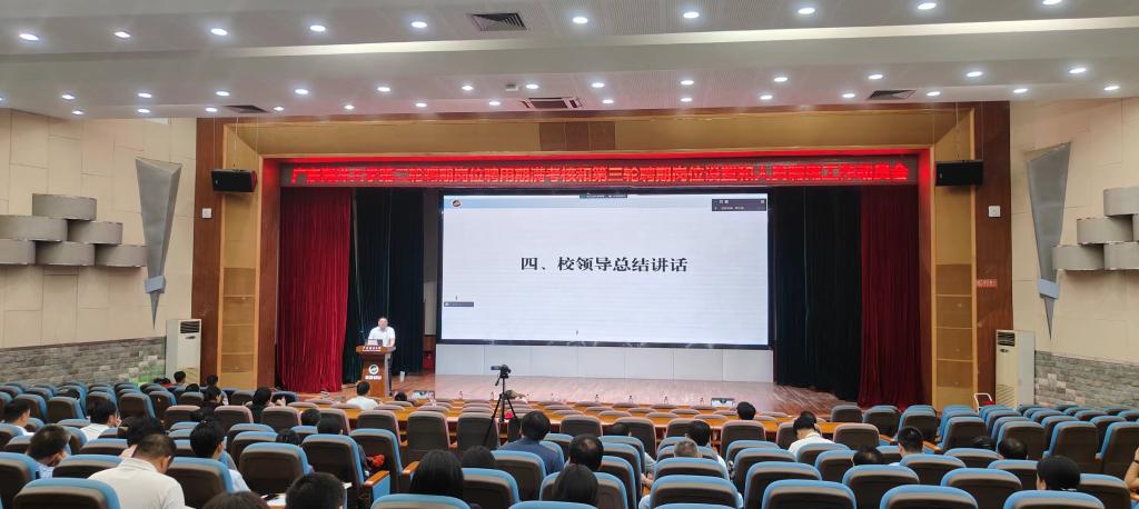5月28日,学校第二轮聘期岗位聘用期满考核和第三轮聘期岗位设置和人员聘用工作动员会在湖光校区广学楼多功能厅举行。党委常委、副校长谭北平,党委常委、宣传统战部部长林宇出席会议。各单位、部门处级领导干部及相关工作人员参加会议。会议由人力资源部部长鲁义善主持。