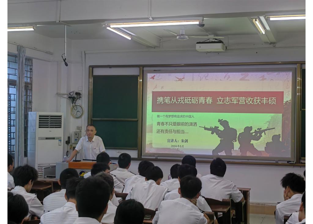 本次宣讲会邀请了广东省国防教育宣讲团专家朱剑副教授作为主讲,他围绕军人的使命和当前的安全形势、参军入伍的十大收获、从军所享受的权益等三个方面向同学们详细介绍了大学毕业生参军入伍的优惠政策,鼓励同学们积极投身国防和军队建设,并为在场学生答疑解惑。