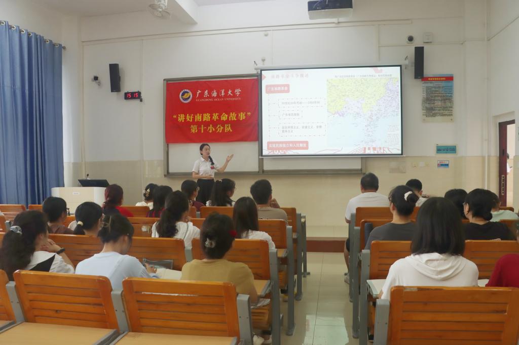 “讲好南路革命故事”宣讲团4名宣讲员分别向北部湾大学学前教育专业等4个班级的同学们上了一堂别开生面的红色思政课。宣讲员们以饱满的热情和生动的语言讲述了南路革命先驱黄学增、钟竹筠等革命先辈的光辉事迹和感人故事,通过多媒体展示、互动问答等方式,与同学们进行了深入交流,引发了同学们的共鸣。