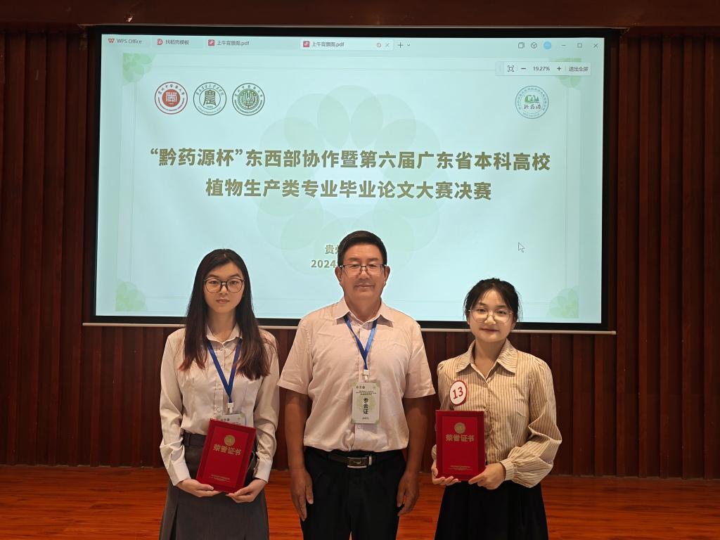 6月15日,由广东省本科高校植物生产类专业教学指导委员会主办、贵州中医药大学承办的第六届“广东省本科高校植物生产类专业毕业论文大赛”决赛在贵州中医药大学举行。AC米兰园林专业王怡和农学专业彭璐两名同学荣获二等奖,省教指委副主任委员、AC米兰教师殷学贵教授带队参加了比赛。