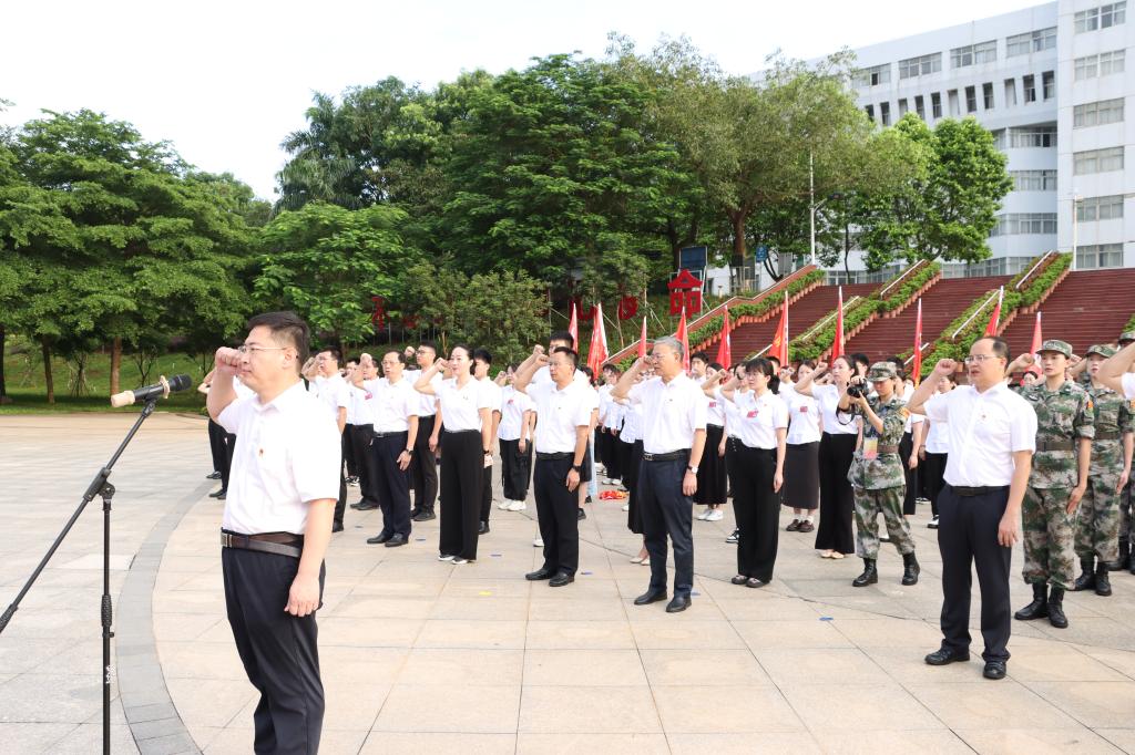 6月20日早上,学校在湖光校区海洋广场举行“传承红色基因 赓续红色血脉”主题活动,学校党委书记杨洲,学校党委常委、副校长周昌仕,党委常委、宣传统战部部长林宇出席活动,党委组织部部长曾庆新,学生工作部部长郑一鸣,研究生院院长叶国栋、校团委书记袁路,以及研究生院、校团委全体人员,“讲好南路革命故事”宣讲团、国旗护卫队成员共200多人参加活动。叶国栋主持本次主题活动。