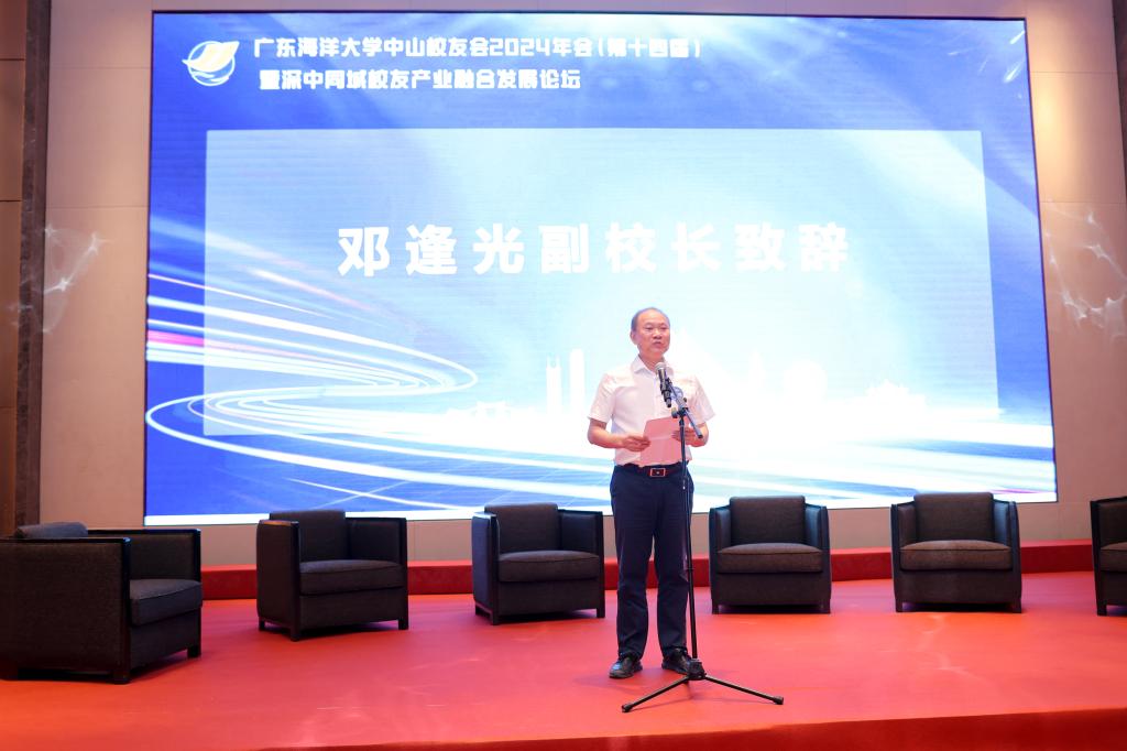 邓逢光代表学校向中山校友会年会的成功举办表示热烈祝贺,向广大校友致以亲切问候和美好祝愿,勉励中山和深圳两地校友抓住机遇,积极参与深圳、中山两地的产业融合发展,在推动科技创新、促进产业升级、加强人才培养等方面发挥更大的作用,共同为学校的发展、粤港澳大湾区的建设和国家经济社会的发展做出更大的贡献。