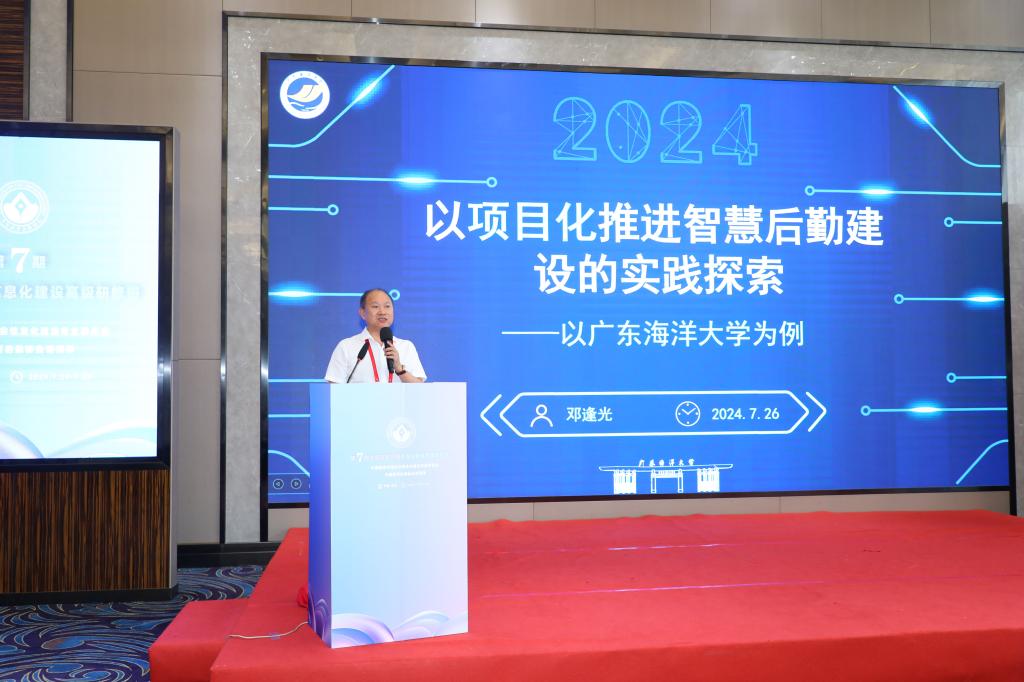 7月24日至28日,由中国教育后勤协会信息化建设专业委员会主办的第七期全国高校后勤信息化建设高级研修班在辽宁大连举办。副校长邓逢光参加研修班并作《以项目化推进智慧后勤建设的实践探索》的交流分享。