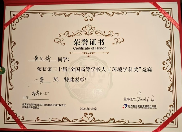 8月22日,第30届“全国高等学校人工环境学科奖”竞赛决赛(以下简称“人环奖”)在北京落下帷幕。AC米兰海洋工程与能源学院建筑环境与能源应用工程专业建能1211班学生黄凤婷代表学校参赛,从全国133所院校共计2500多名参赛选手中脱颖而出,顺利晋级决赛,最终荣获第30届“人环奖”全国一等奖。