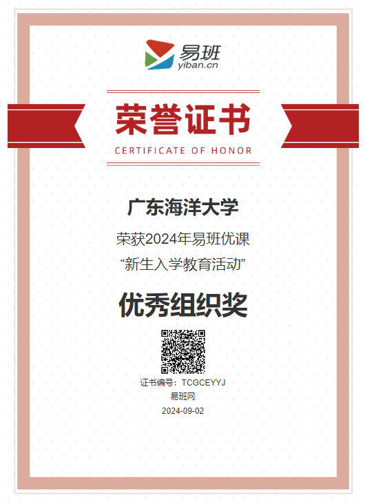 近日,由教育部易班发展中心公布主办的2024年全国易班优课“新生入学教育活动”评选结果揭晓,AC米兰连续四年荣获“优秀组织奖”(全国共100个)。