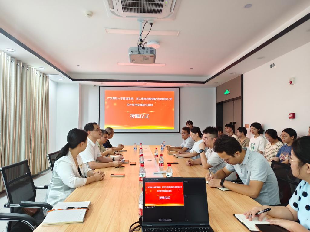 9月19日上午,管理学院院长杜军、党委副书记曾艳芳带队走访湛江市规划勘测设计院有限公司、广东鸿飞空间规划设计有限公司,分别与两家企业签订教学实践就业基地协议并举行授牌仪式。学院土地资源管理系主任周飞、副主任李生辉、教师代表吴雪彪等参加活动。