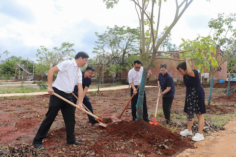 一行来到足荣村“紫枫青年林”,对遭受台风“摩羯”受损倒斜的树木进行培土扶正;到学院“双百行动”艺术赋能雷州足荣村规划设计项目墙绘区,实地查看墙绘并研讨项目开展思路、内容设计及下一步计划;到茂德公大观园参观,交流乡村旅游文创产品设计项目开展情况。学院还在足荣村举行了蜜蜂精神文创雕塑群筑立仪式,新雕塑群将配合墙绘点缀,成为足荣村特色景观。