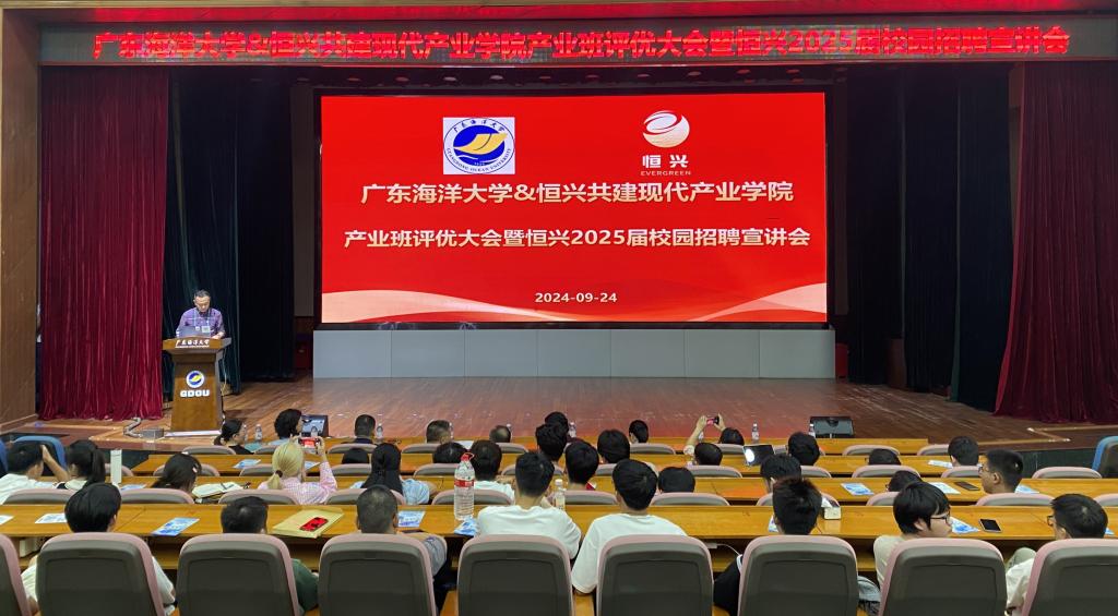 9月24日,AC米兰中国官网-广东恒兴集团共建“现代渔业产业学院”首届产业班实习评优大会在主校区多功能厅召开。广东恒兴集团副总裁莫爵君,行政人事中心总经理王友国、副总经理谭彩红,水产学院党委书记王海燕、教务部副部长乔玉香、水产学院副院长杨奇慧、首届产业班班主任汤保贵副教授以及生产实习指导教师代表和水产养殖学专业全体产业班同学100余人参会。会议由水产养殖系主任王忠良主持。