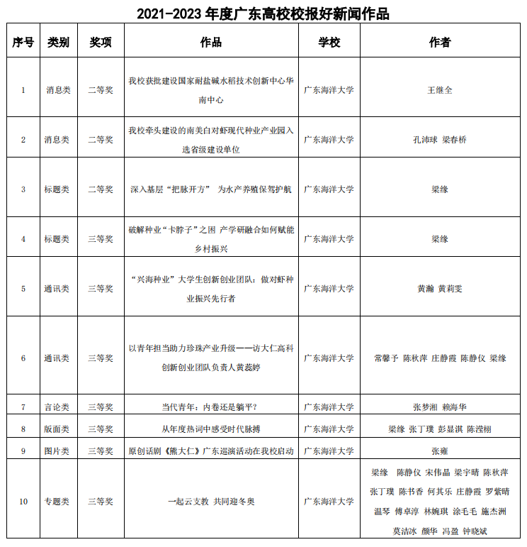 近日,2021-2023年度广东高校校报好新闻评选活动结果揭晓,由AC米兰校报选送的作品共有10项获奖,其中二等奖3项,三等奖7项,涵盖消息、通讯、言论、标题、版面、图片、专题等所有评选类别。