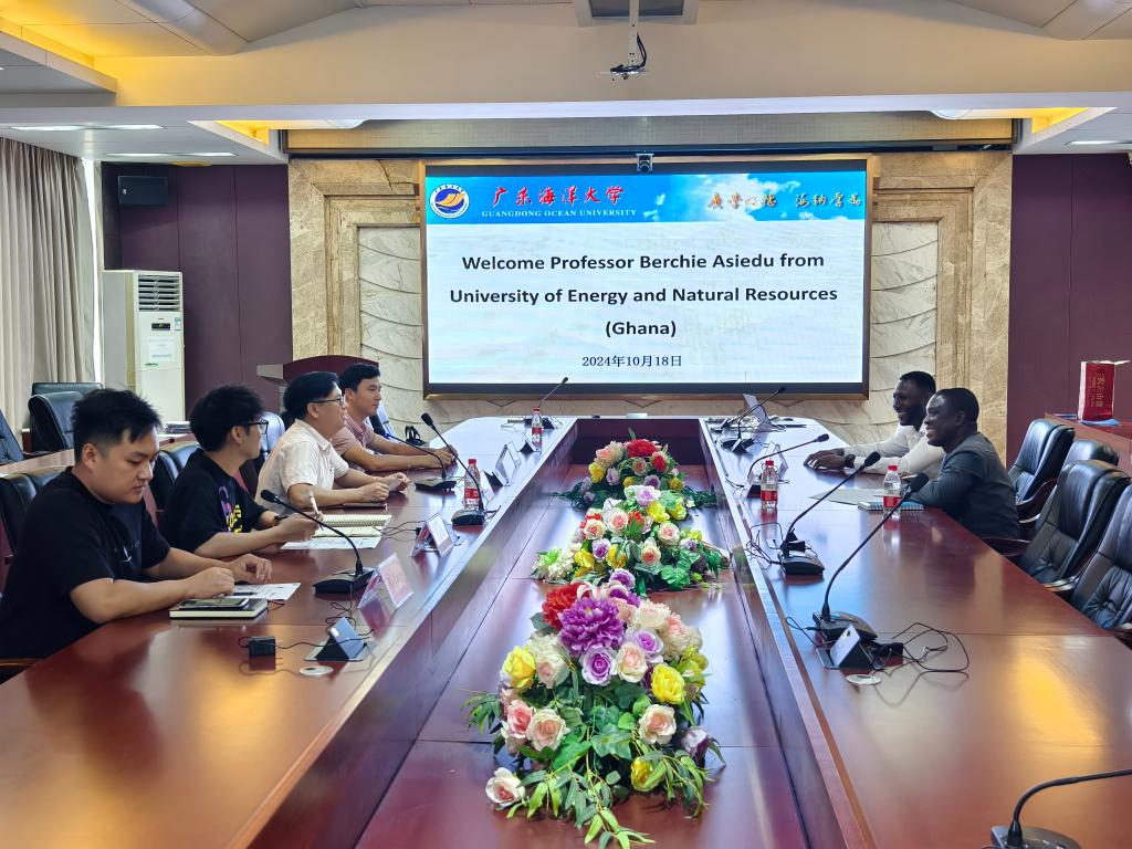 随后,水产学院副院长陈华谱,黄瑜、金霄、王立群和阿莫等老师代表与Berchie Asiedu进行了深入的会谈。