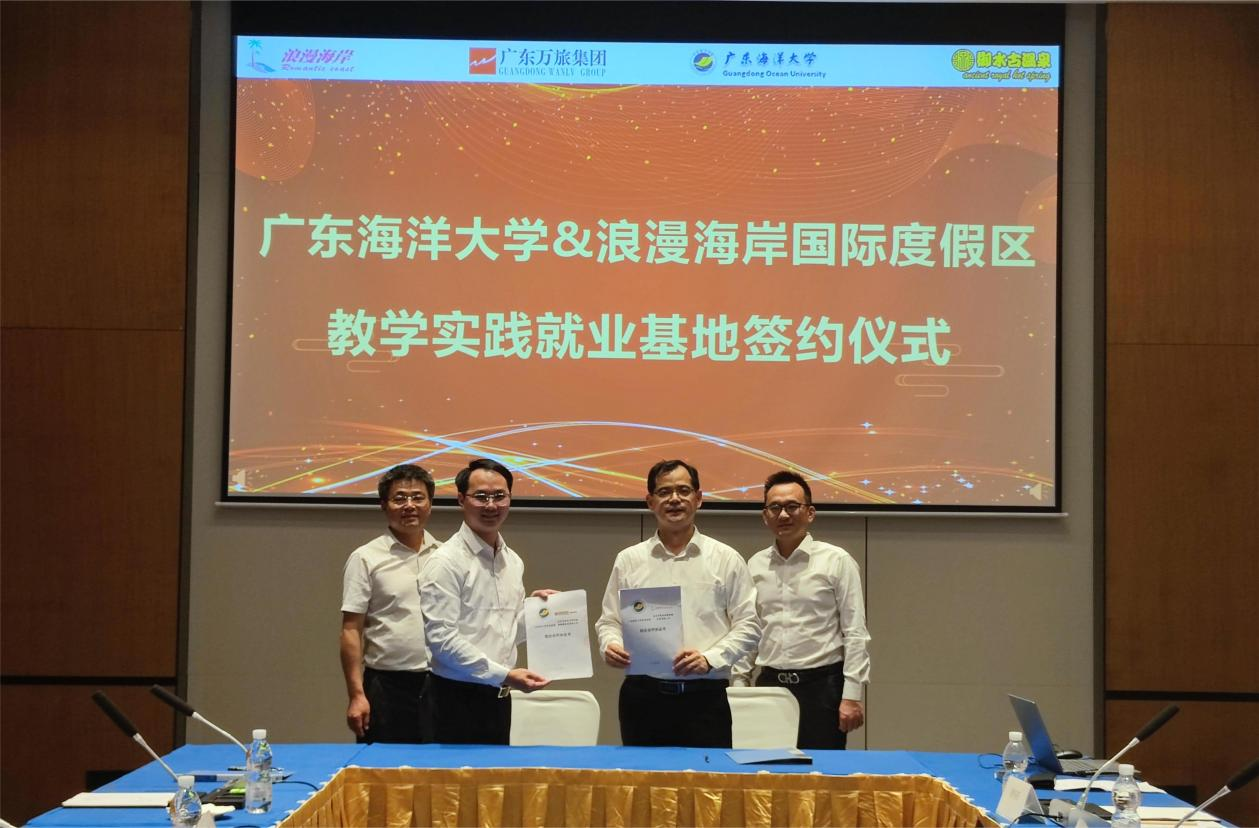 为加强校企合作,为学生提供更多实践平台,11月4日下午,管理学院党委书记李育芳、院长杜军、党委副书记曾艳芳、副院长陈涛等一行6人走访了广东万旅集团旗下的茂名御水古温泉喜来登度假酒店及浪漫海岸温德姆度假酒店,与广东万旅集团就校企合作事宜进行深入探讨。广东万旅集团副总经理林家富、人力资源总监罗富权及两家酒店人力资源经理接待了学院一行。双方举行了共建教学实践就业基地签约及揭牌仪式。