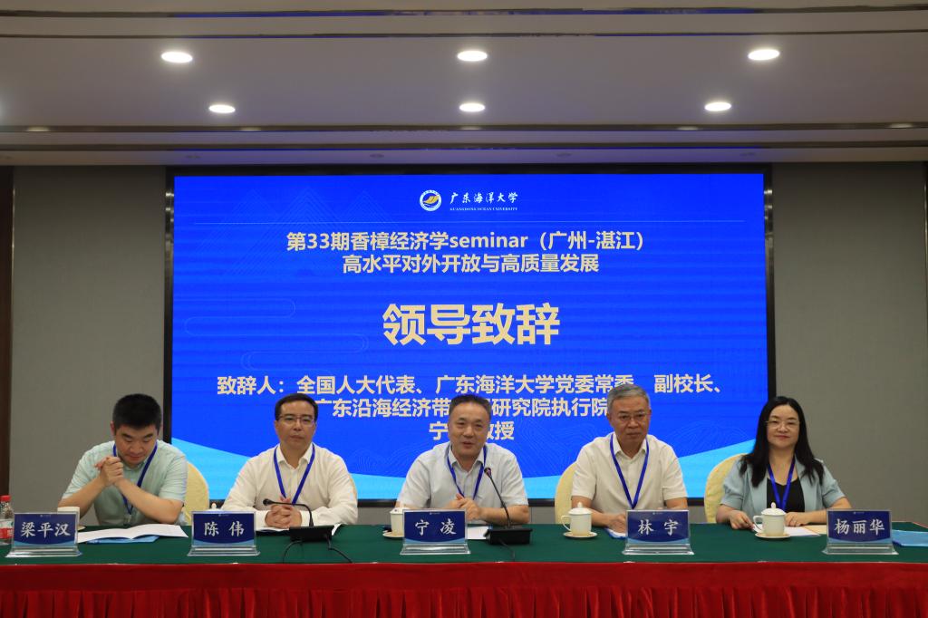 11月16日,第33期香樟经济论坛(广州-湛江分论坛)在湛江市海滨宾馆举行。本次会议由香樟学术平台主办,AC米兰经济学院及海洋经济与管理研究中心联合承办。学校党委常委、副校长宁凌,学校党委常委、宣传统战部部长林宇等校领导出席了会议。论坛以“高水平对外开放与高质量发展”为主题,汇聚了来自中国社会科学院、香港科技大学(广州)、哈尔滨工业大学(深圳)、南京农业大学、海南大学、暨南大学、四川农业大学等国内外知名学术机构的专家学者,以及经济学院的教师和研究生共120余人参会。会议开幕式由经济学院院长陈伟主持。