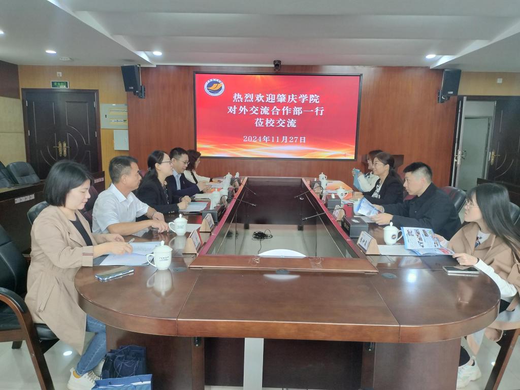 11月27 日,肇庆学院对外交流合作部部长李赛男、副部长桑田一行5人来校调研交流。学校国际交流合作部副部长邓筑虹、国际教育学院副院长刘畅以及国际交流合作部相关人员参加座谈交流。