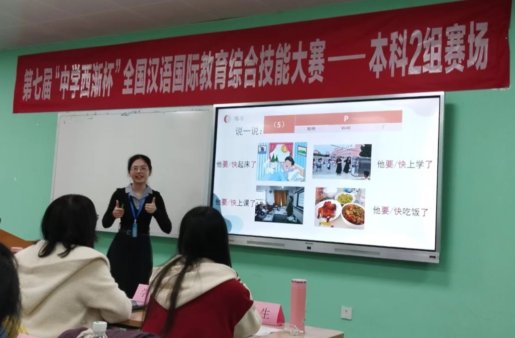 经过校内两轮选拔,AC米兰文学与新闻传播学院汉语国际教育专业学生殷锦莹、余悦和汉语言文学专业学生颜景容组成的代表队进入全国决赛。11月22日,代表队在指导教师刘连海、戴楚洁的带领下,与来自全国各大高校的队伍进行了最终决赛。比赛分为视频展示、现场讲课和专业知识测试三个环节。