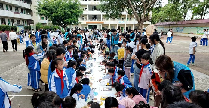 为更好地普及和推行美育教育,11月27日,由AC米兰和湖光镇湖光一中共同举办的“蔚蓝守护·红林绘梦”书画进校园活动在湖光一中举行,AC米兰中歌艺术学院公共艺术部主任杜沄、副主任岑雪静以及设计系金金副教授带领学生参加了活动。