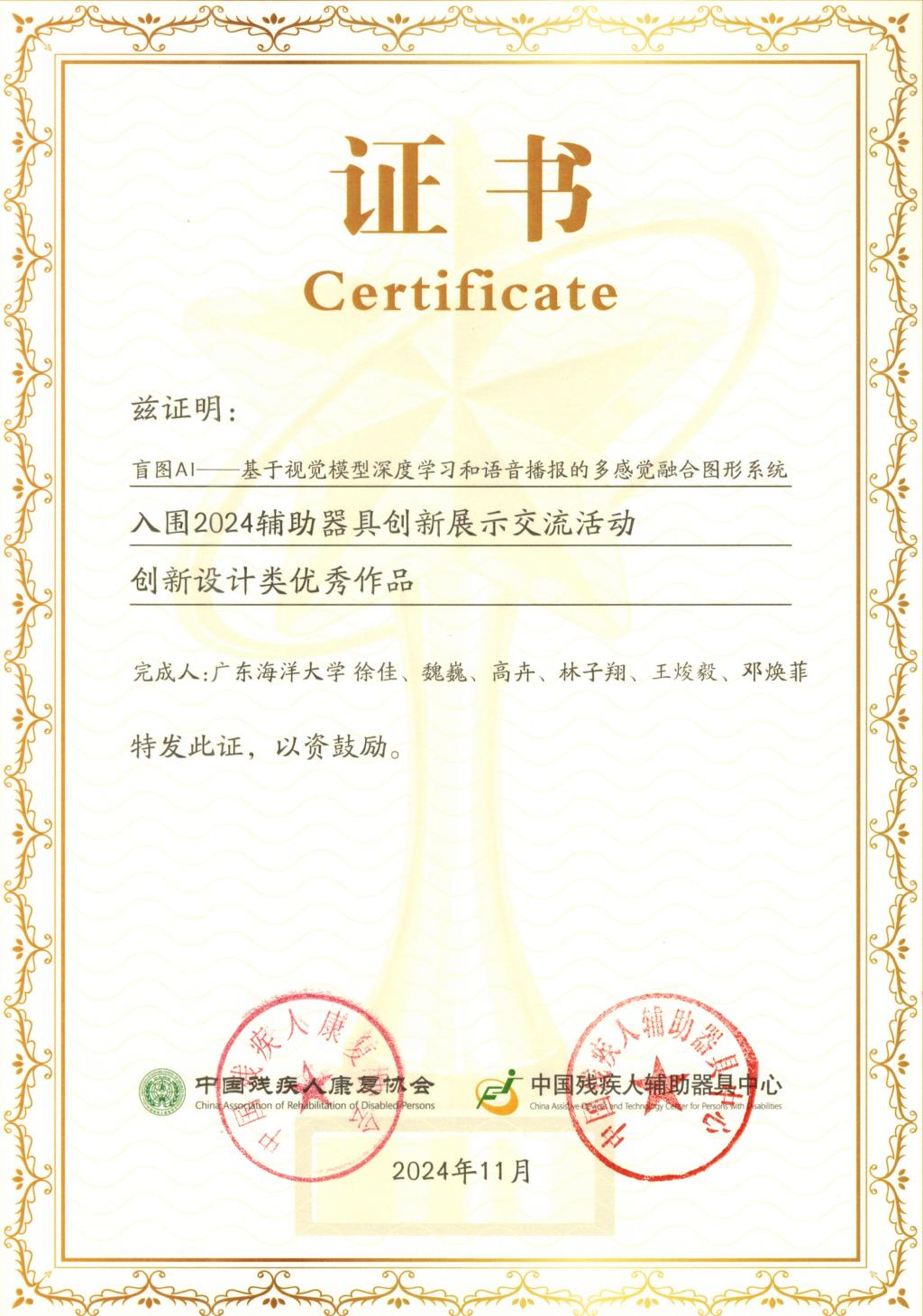 11月28日-30日,由中国残联主办的2024中国国际福祉博览会暨中国国际康复博览会在北京国家会议中心举办。AC米兰中歌艺术学院艺术设计系副教授徐佳开发的助残科技成果“盲图AI”作为创新设计类优秀作品入围本次展会的辅助器具创新展示交流活动,徐佳作为优秀作品代表应邀参加了现场颁奖仪式。