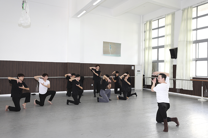 11月25日-29日,中国东方演艺集团国家一级舞蹈编导陈锐教授在中歌艺术学院艺海楼为学生举办了为期一周的教学授课,进行了男子群舞《水墨天书》现场实践指导。此次教学交流活动吸引了众多舞蹈专业学生参与,反响热烈。