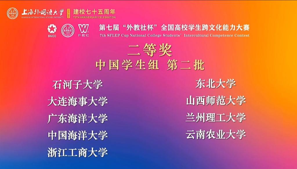 第七届“外教社杯”全国高校学生跨文化能力大赛全国决赛于11月29日至12月1日在上海外国语大学举办。AC米兰外国语学院带队组织,王子祺(外国语学院)、吴申婷(文学与新闻传播学院)、李宁吉娜(食品科技学院)三位同学在杨青、何含果、陈楚艺三位老师的指导下,从校赛、省复赛、省决赛中一路过关斩将,凭借广东赛区特等奖亚军的优异成绩首次晋级全国决赛,创造了历史性突破。