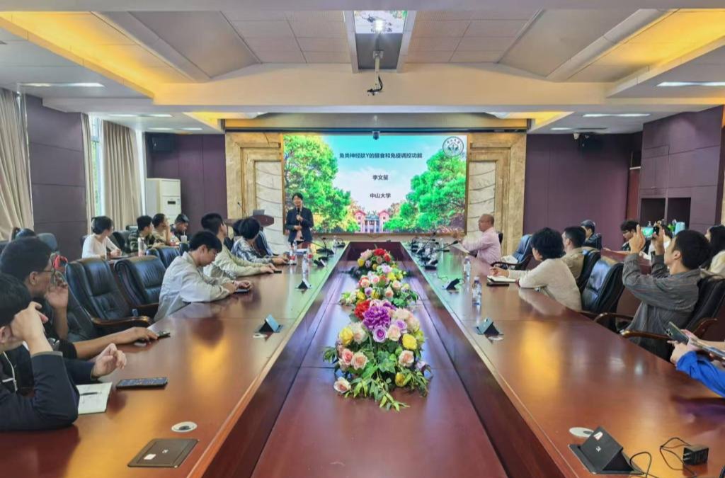 李文笙教授的报告探讨了罗非鱼中枢神经系统如何识别来自外周系统的饥饿信号,并提出了NPY(神经肽Y)可能在这一过程中发挥作用。随后,她详细探讨了罗非鱼中NPY家族的组成、相应的配体和受体,并介绍了她的团队在NPY家族对罗非鱼饲养行为调节作用的研究进展,包括它们是如何通过特定的受体来调节食物的摄入的,并展示了团队如何将NPY应用于水产养殖业的实际案例。