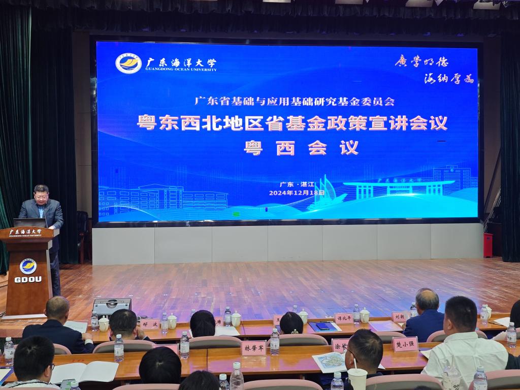 谭北平代表学校对参会嘉宾表示热烈欢迎,指出学校高度重视基础研究工作,紧密对接国家海洋战略与地方经济发展需求,着力完善涉海基础研究与战略高新技术研发体系,全力为区域经济转型、产业升级及行业科技发展提供支撑与引领,并详细介绍了学校学科建设及省基金申报立项情况。谭北平表示,希望以此次宣讲会为契机,增进与各基金依托单位的交流合作,携手开创粤西地区基础研究与科技创新工作的崭新局面。