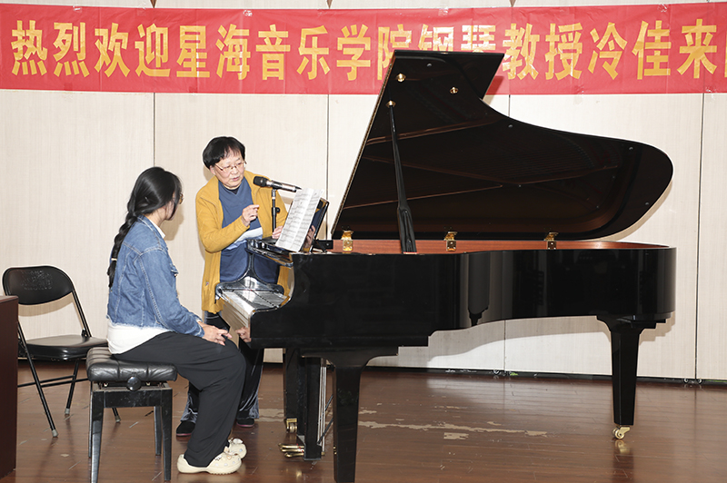 在座谈交流课上,冷佳进行了示范演奏,其精湛的技艺和对音乐深刻的理解赢得了现场师生们的阵阵掌声。随后,钢琴专业学生依次上台演奏,冷佳针对他们在曲目理解、演奏技巧、情感表达等方面存在的问题进行了细致入微的指导。学生们受益匪浅,纷纷表示对钢琴演奏有了新的认识和感悟。此外,冷佳还与学生们进行了互动交流,耐心解答他们在钢琴学习过程中遇到的问题和困惑,给出了针对性的改进建议。