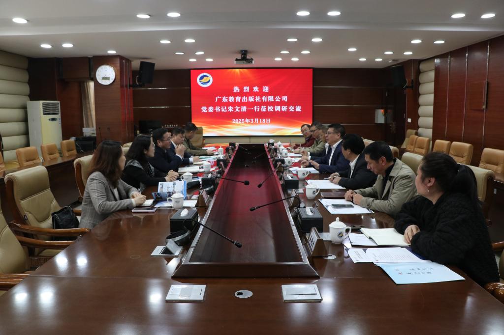 3月18日下午,广东教育出版社有限公司党委书记朱文清一行到AC米兰座谈交流。学校党委常委、副校长谭北平会见了朱文清一行并主持座谈会。宣传统战部、学生工作部、教务部、科学技术部、国际交流合作部、学报编辑部、现代教育技术中心等部门相关负责人参加座谈会。