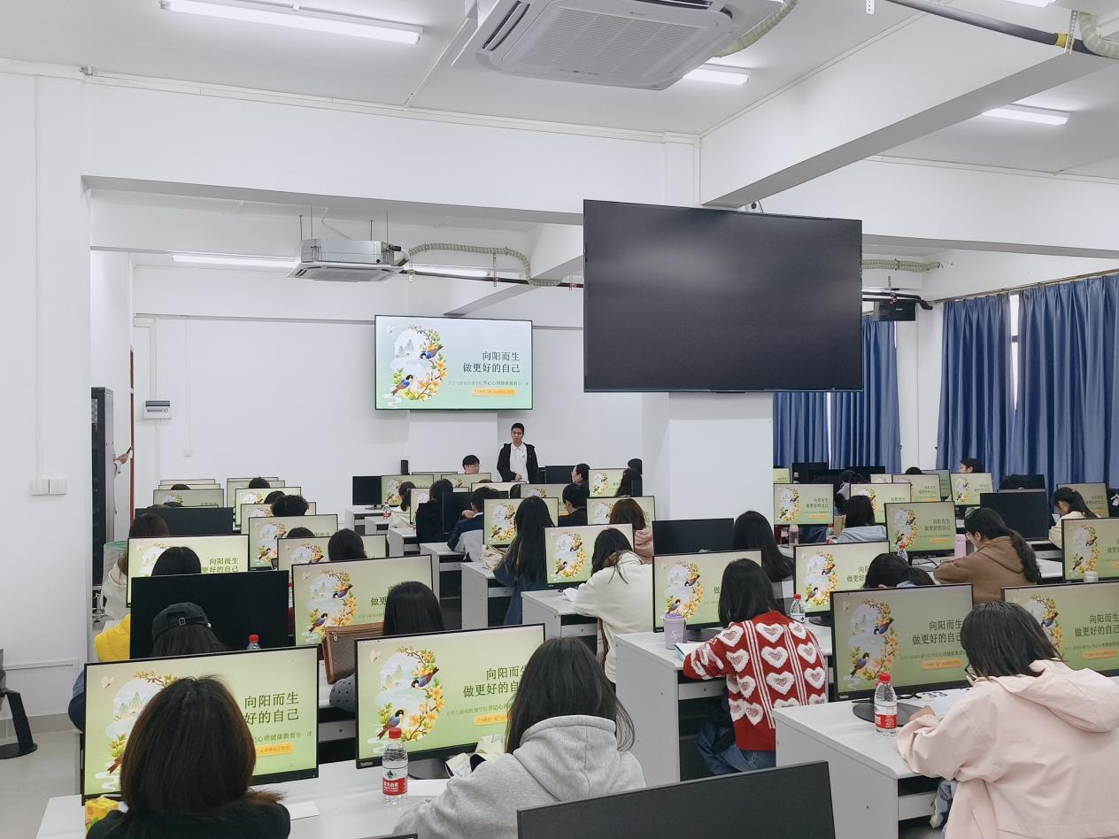 为深入推进大学生心理健康教育工作,引导学生以积极心态开启新学期新征程,3月19日下午,文学新闻传播学院在文科楼3号楼405室举办了“书记心理健康教育第一课”活动。学院党委书记张艳梅以《向阳而生,做更好的自己》为题,为现场70余名学生带来了一场温暖治愈的心理健康分享课。活动由学院“与你在一起”心灵驿站工作室承办,工作室负责人、辅导员崔文婷老师主持活动。