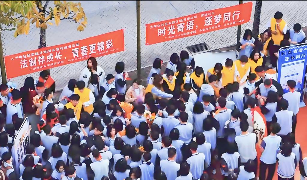 近日,为积极响应学校首届校园法治文化节活动的号召,经济学院联合乐华街道乐金社区党支部在经开区第一中学举办了“时光寄语,法护青春”志愿服务活动。本次活动由经济学院学生党支部党员、团学骨干组成志愿服务队,面向初中生进行普法义教,引导他们懂法守法,共同建设和谐校园。