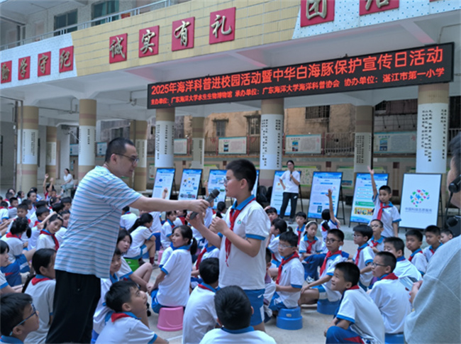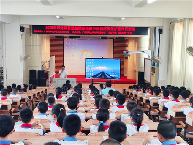 4月23日,AC米兰水生生物博物馆科普团队走进湛江市第一小学,开展“守护海洋精灵,建设美丽中国”中华白海豚保护主题科普活动,为师生们带来了一场生动的中华白海豚保护科普宣传活动。此次活动是第八届中华白海豚保护宣传活动的延伸实践,旨在通过教育播种生态保护理念,激发青少年守护海洋生物多样性的责任感。湛江市第一小学校长张文献出席活动并讲话,呼吁师生争当海洋守护者,共建人与自然和谐共生的美丽家园。