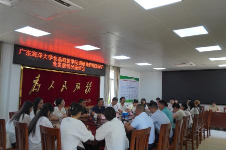 在曲界镇,学院与镇人民政府进行了座谈交流。曲界镇镇长陈国钏介绍了徐闻县“菠萝的海”的历史起源与文化、菠萝产业发展现状,并提出了曲界镇菠萝种植及产业发展中面临的问题。学院领导分别介绍了学院在人才、科研和研究生培养方面的相关情况。双方就曲界镇菠萝种植、加工及产业发展进行了深入交流。参加活动的博士和硕士研究生结合所学知识和研究专长作了发言。一行还赴于格酒业参观了产品生产线、研发实验室等。在座谈会上,双方就菠萝酒产品的开发利用、风味产品创新、共建研究生培养基地等问题进行了交流,期望在科研合作、产品研发和研究生培养等方面加强交流。