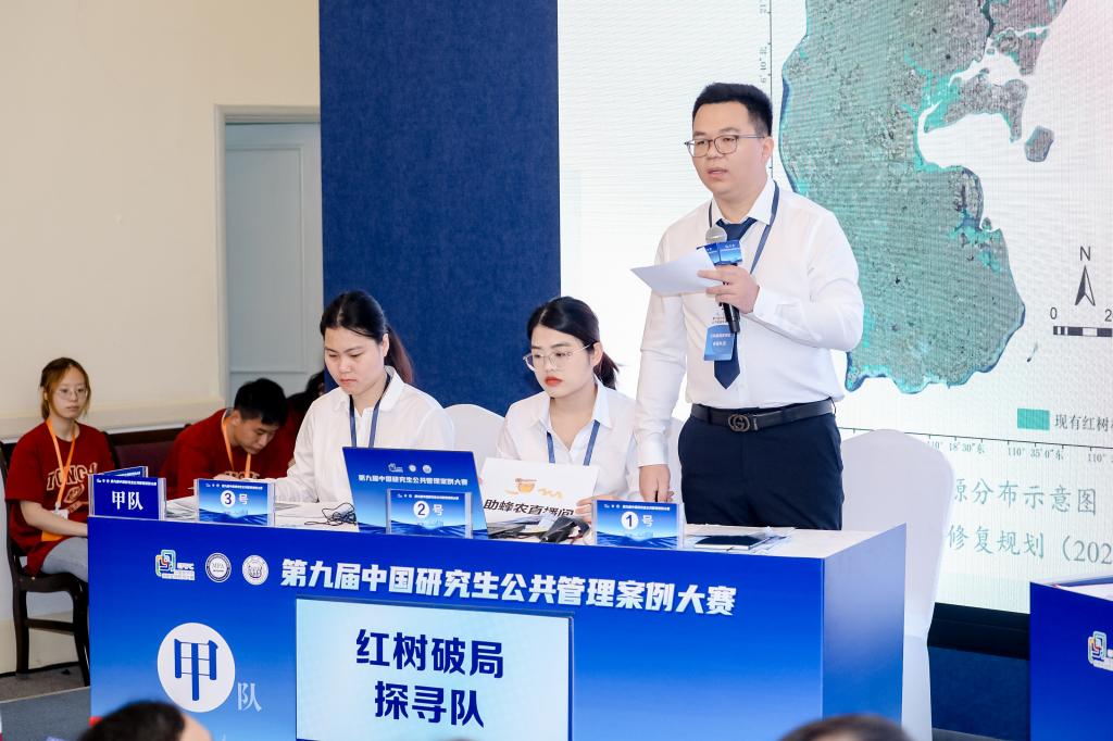 在决赛现场,“红树破局探寻队”的案例《百年红树何以焕发新生机:探寻湛江红树林绿色发展与蓝色生计协同发展之路》最终斩获全国二等奖。该队由指导老师李生辉、杜军、陈士银,MPA学生许晓林、洪桂翡、吴碧云、吴玉白、宋雪、高彪组成。在备赛过程中,旅游管理专业2023级本科生陈玮杰、康锦阳、黄日昇参与调研和资料搜集工作。同时,两个获奖案例均获得“中国专业学位案例中心公共管理案例库”入库申请的资格。