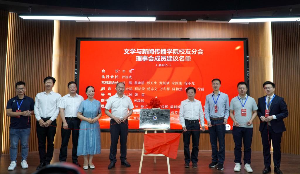 会上,莫精华宣读了学校关于成立文学与新闻传播学院校友分会的批复。会议正式确定了校友分会理事会人员。新成立的校友分会理事会由邓建担任会长、2002级校友罗祖威担任执行会长。邓逢光与学院主要领导和校友代表共同为校友分会揭牌,并为邓建、罗祖威颁发了聘书。
