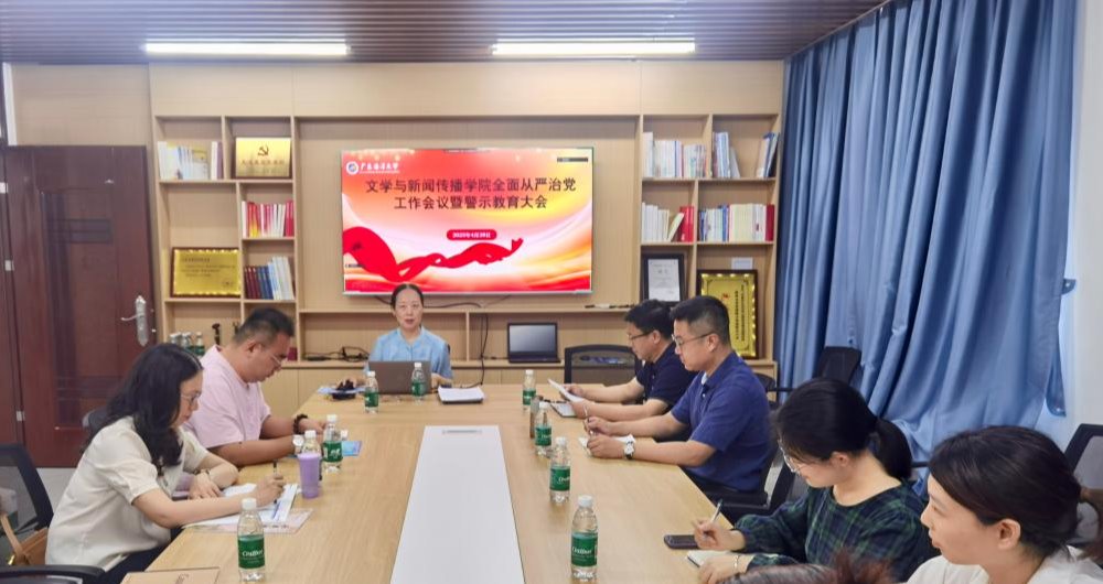 4月28日上午,文学与新闻传播学院在文科楼3号楼807会议室召开2025年全面从严治党工作会议暨警示教育会。学院班子成员、党委委员、纪委委员、党支部书记现场参会,其他教师代表线上参会。学院党委书记张艳梅主持会议。