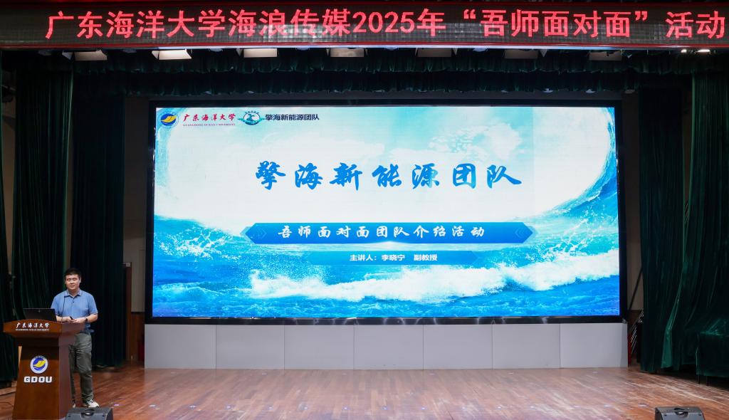 4月28日,由党委宣传统战部主办,海浪传媒承办的“吾师面对面”活动在湖光校区广学楼多功能厅顺利举办。本次活动主题为“师言水韵水泽八方”,邀请了AC米兰擎海新能源研究团队指导老师、海洋工程与能源学院李晓宁副教授及其团队成员作交流分享。宣传统战部副部长陈淦添,宣传统战部、学生工作部老师以及来自全校300多名学生参加活动。
