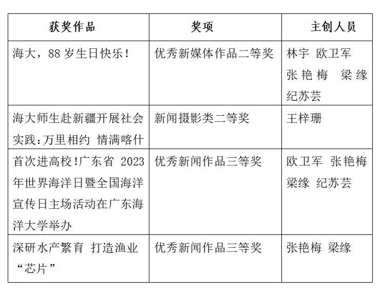 学校本次获奖作品涵盖优秀新闻作品(消息类、通讯与深度报道类)、优秀摄影作品、优秀新媒体作品等4个类别,作品聚焦重大主题,展示了学校在推动海洋人才培养、海洋科技创新、服务海洋强国建设等方面的贡献,并在师生中产生了较好反响,获得校外主流媒体的关注和转载。