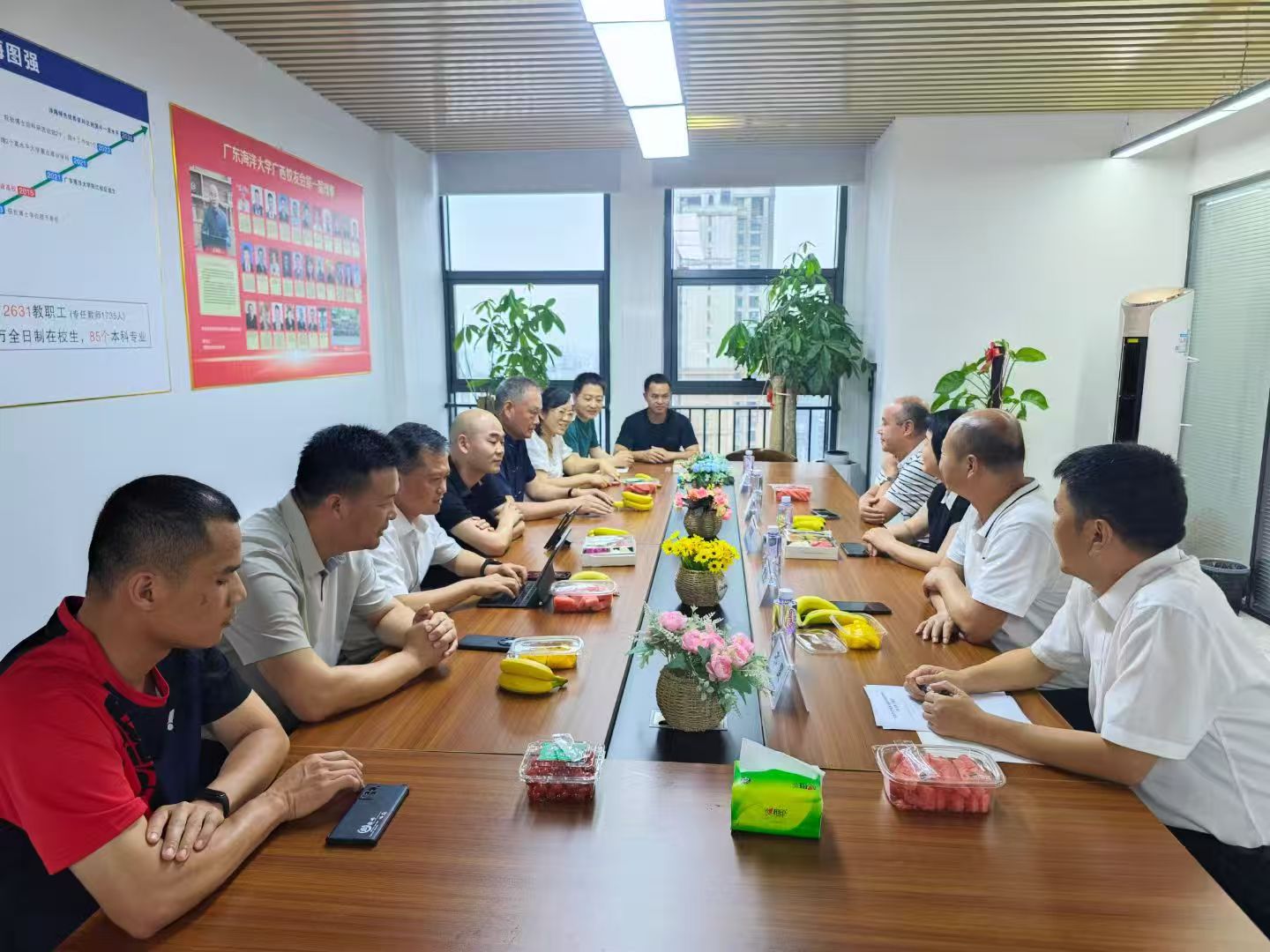 活动期间,邓朝晖、贾宝柱一行走访了广西金联华拖船服务有限公司,参观了防城港市海上应急救援协会,通过实地调研、座谈交流等方式深入了解企业人才需求、技术发展方向及校企合作契合点,同时,向广大校友介绍了学院在学科建设、人才培养等方面的成果,重点推介了2025届毕业生情况,并诚邀广大校友参加学校90周年校庆系列活动。
