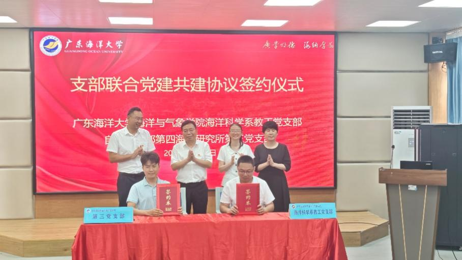 随后,学院海洋科学系教工党支部与研究所第三党支部代表在海科楼107会议室签署共建协议,标志着双方合作正式开启。该所所长丰爱平,AC米兰组织部正处级组织员曾令梅,学院党委书记毛琪、院长谢玲玲共同见证这一重要时刻。