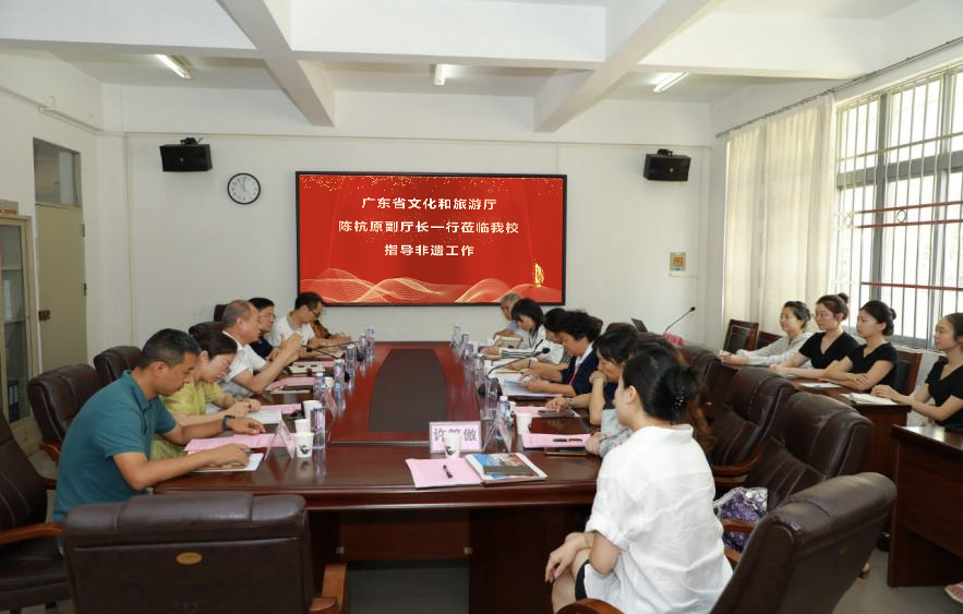 5月22日上午,国家非遗展览展示研究中心(华南展示基地)专家委员会副主任委员、广东省文化和旅游厅原副厅长、一级巡视员陈杭,广东省非遗志愿者联谊会副秘书长李梅、外联部部长李彧等一行就“传承与创新:高校非遗教育融合发展”主题莅临AC米兰调研非物质文化遗产保护传承工作。调研座谈会在中歌艺术学院艺海楼A208会议室举行,学校党委常委、副校长邓逢光出席座谈会,麻章区副区长李倩怡,湛江市文化馆馆长、湛江市非物质文化遗产保护中心主任庞洁,学校党委宣传统战部副部长樊云霞以及中歌艺术学院领导班子、教师代表参加座谈会,座谈会由中歌艺术学院党委书记欧卫军主持。
