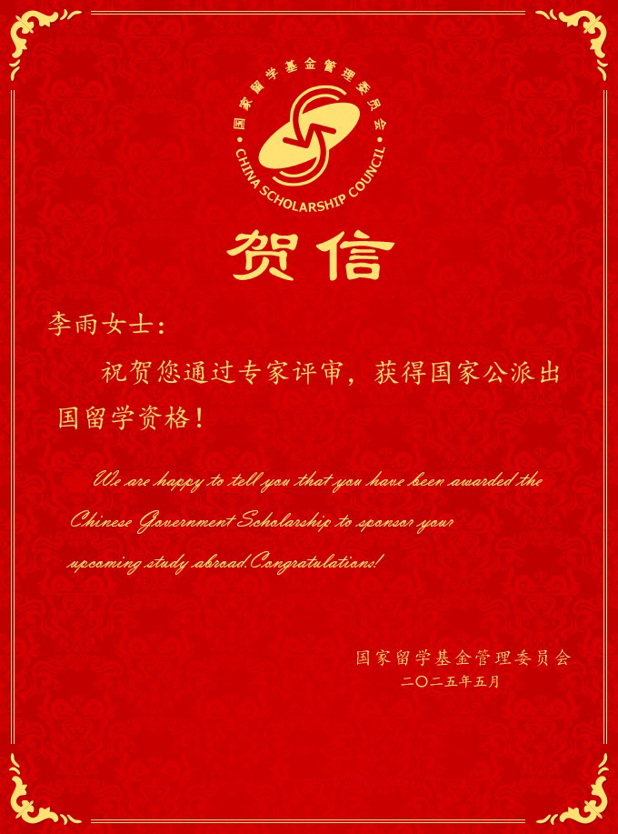 近日,国家留学基金管理委员会(CSC)公布了2025年“国家建设高水平大学公派研究生项目”录取结果,水产学院博士研究生李雨成功获批联合培养博士项目资助。