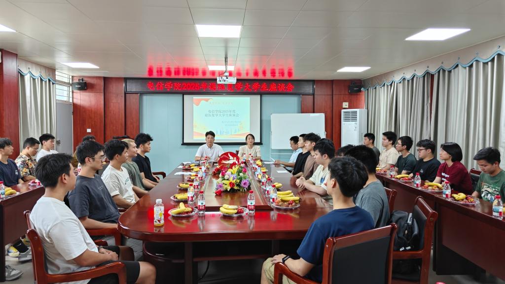 6月9日中午,电子与信息工程学院在图海楼604会议室召开2025年退伍复学大学生座谈会。学院党委书记袁仁广、党委副书记王梓珊、武装部张亚斌老师、学院辅导员郝斌飞、吴建强及38名退伍复学大学生参加会议,会议由王梓珊主持。