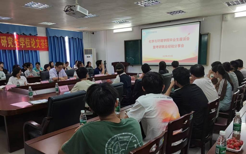 6月10日下午,化学与环境学院在望海楼B304室举办了2025届毕业生座谈会暨考研就业经验分享会。学院院长赵辉、副院长孔松芝,毕业班辅导员、学生代表共50余人参加会议。会议由学院党委副书记翁江峰主持。