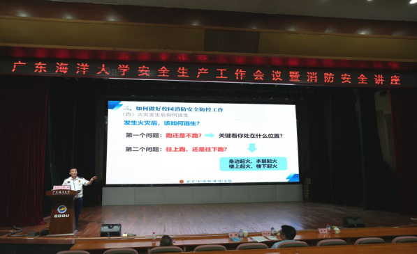 会议邀请湛江市消防救援支队副支队长韩彬作专题培训。韩彬以《抓好消防安全 保高质量发展》为题,结合高校消防安全特点,通过典型案例分析,系统讲解了消防安全责任体系构建、隐患排查要点及应急处置流程,为与会人员上了一堂生动的安全教育课。