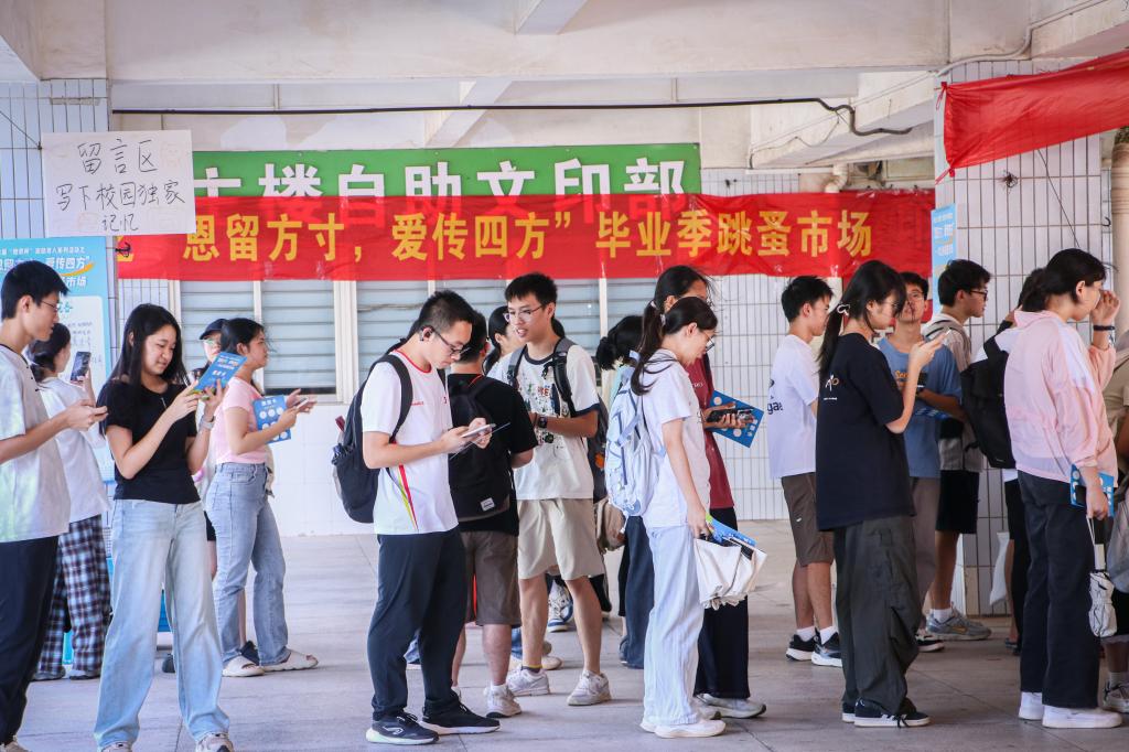 跳蚤市场的内容设计丰富多元,机器狗、机器人表演和3D打印技术展演,不仅展示了学校的创新活力,更激发了参与学子的求知欲;融入校史元素的小游戏,则巧妙勾起了准毕业生们对校园生活的眷恋,深化了爱校情怀。每一件流转的物品,每一份真挚的寄语,都承载着学子们的情感与期许,成为一堂生动的实践育人课。