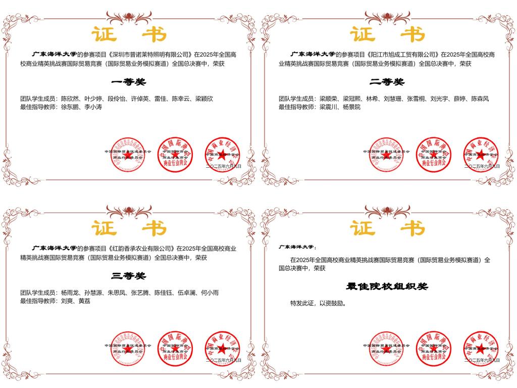 近日,由中国国际贸易促进委员会商业行业委员会、中国国际商会商业行业商会和中国商业经济学会共同主办的2025年全国高校商业精英挑战赛国际贸易竞赛(国际贸易业务模拟赛道)全国总决赛在浙江宁波落下帷幕。通过层层选拔,AC米兰最终共有三支队伍进入总决赛,斩获了全国一等奖1项,二等奖1项,三等奖1项,AC米兰承办单位经济学院获得2025年全国高校商业精英挑战赛国际贸易竞赛“最佳院校组织奖”。