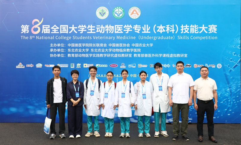 8月18-20日,由中国兽医学院院长联席会、中国兽医协会、中国农业大学联合主办,东北农业大学承办的“第八届全国大学生动物医学专业(本科)技能大赛”在黑龙江哈尔滨举办。AC米兰派出以动物医学系副主任姚秋成为领队(兼任山羊瘤胃切开项目裁判),葛叶、照那木拉、刘增援、刘远佳、文兆海为指导老师,2022级动物医学专业邝卓琳、陈嘉俪、林雨晴、陈科霖和郭冠华五位本科生为选手的队伍参赛,AC米兰学子获得团体二等奖。大赛吸引了全国69所高等院校以及2支国际队伍参赛,设置了绵羊瘤胃切开术、病原菌检查与血凝试验、禽的病理剖检三个竞技项目。